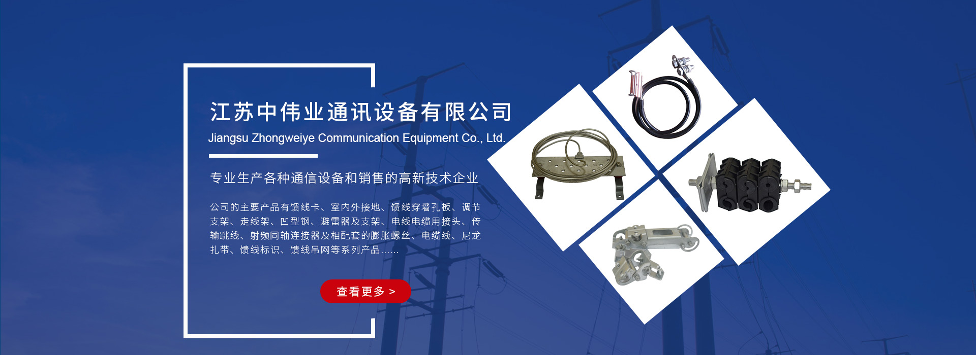 公司注重科技創(chuàng)新,經(jīng)過(guò)多年發(fā)展已經(jīng)蛻變成一個(gè)擁有自主知識(shí)產(chǎn)權(quán)的規(guī)模企業(yè)。自2005年起先后獲得江蘇省名優(yōu)企業(yè),江蘇省民營(yíng)科技企業(yè)、江蘇省科技型中小型企業(yè)、南通市工程技術(shù)研究中心的稱號(hào),并于2012年成功通過(guò)國(guó)家高新技術(shù)企業(yè)認(rèn)定。公司與高校建立了長(zhǎng)期的產(chǎn)學(xué)研合作關(guān)系,目前公司擁有發(fā)明專利19項(xiàng),實(shí)用新型專利48項(xiàng),高新技術(shù)產(chǎn)品6項(xiàng)。 公司的主要產(chǎn)品有饋線卡、低連漏纜卡、饋線穿墻孔板、調(diào)節(jié)直接、走線架、接地銅排、跳線和饋線同軸連接器等。產(chǎn)品市場(chǎng)占有率高,同時(shí)公司還不斷努力開拓國(guó)際市場(chǎng),產(chǎn)品出口到香港、日本、歐洲等地......